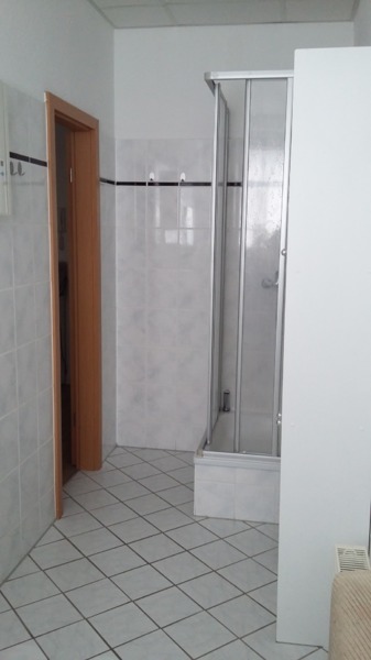 Singleküche (Spüle mit 2 Herdplatten, Kühlschrank, Mikrowelle, Küchengeräten) Bad gefliest mit Dusche und WC |