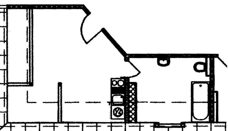Singleküche (Spüle mit 2 Herdplatten, Kühlschrank, Mikrowelle, Küchengeräten) Bad gefliest mit Badwanne und WC |